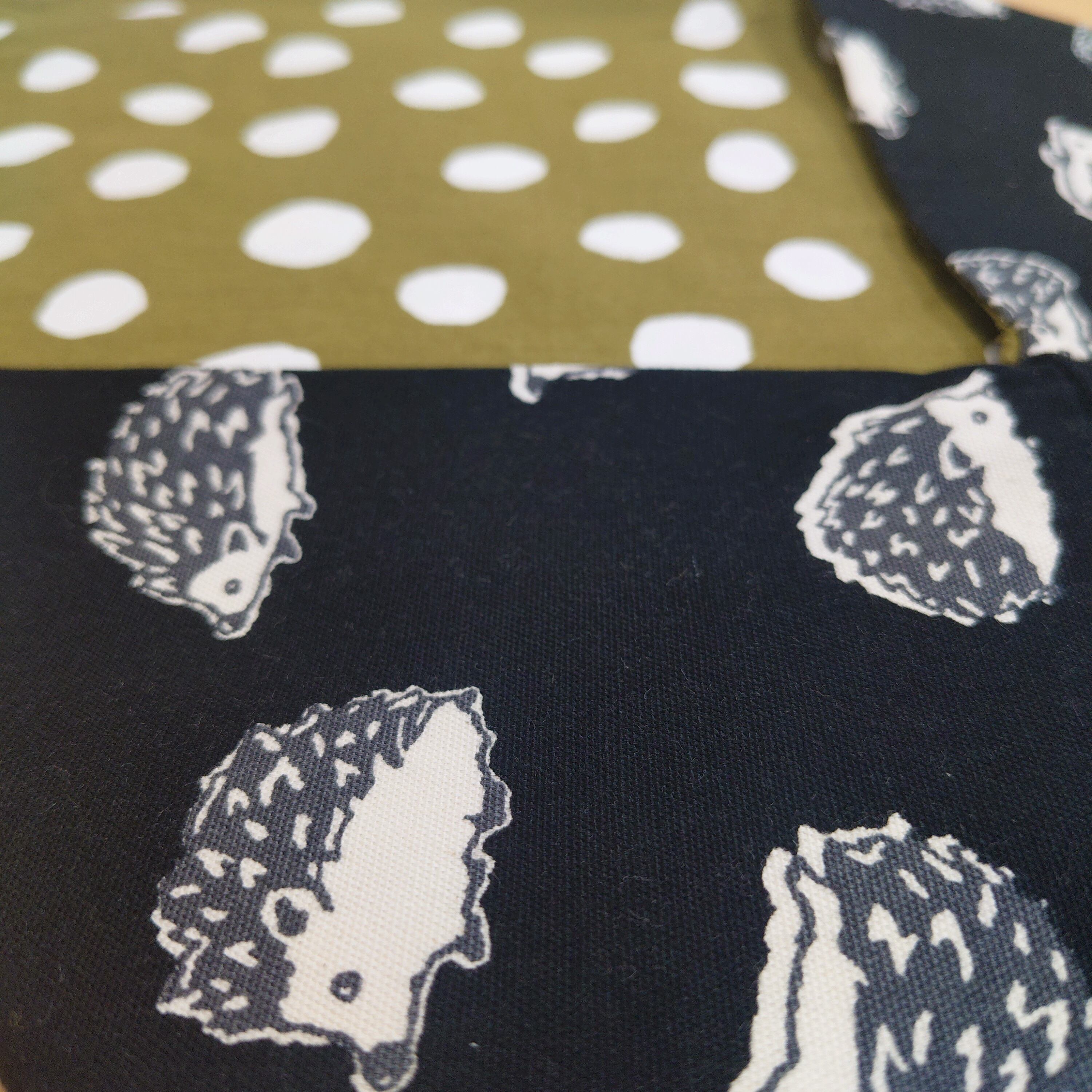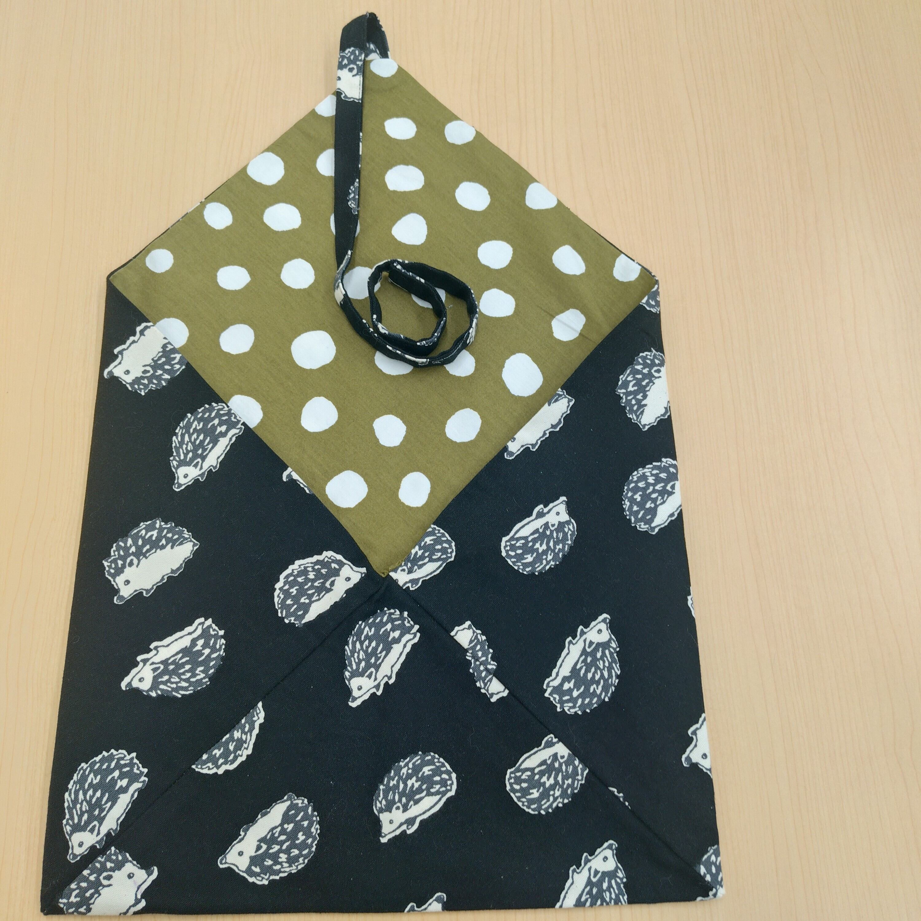 かけ袋 黒ハリネズミ×緑地水玉