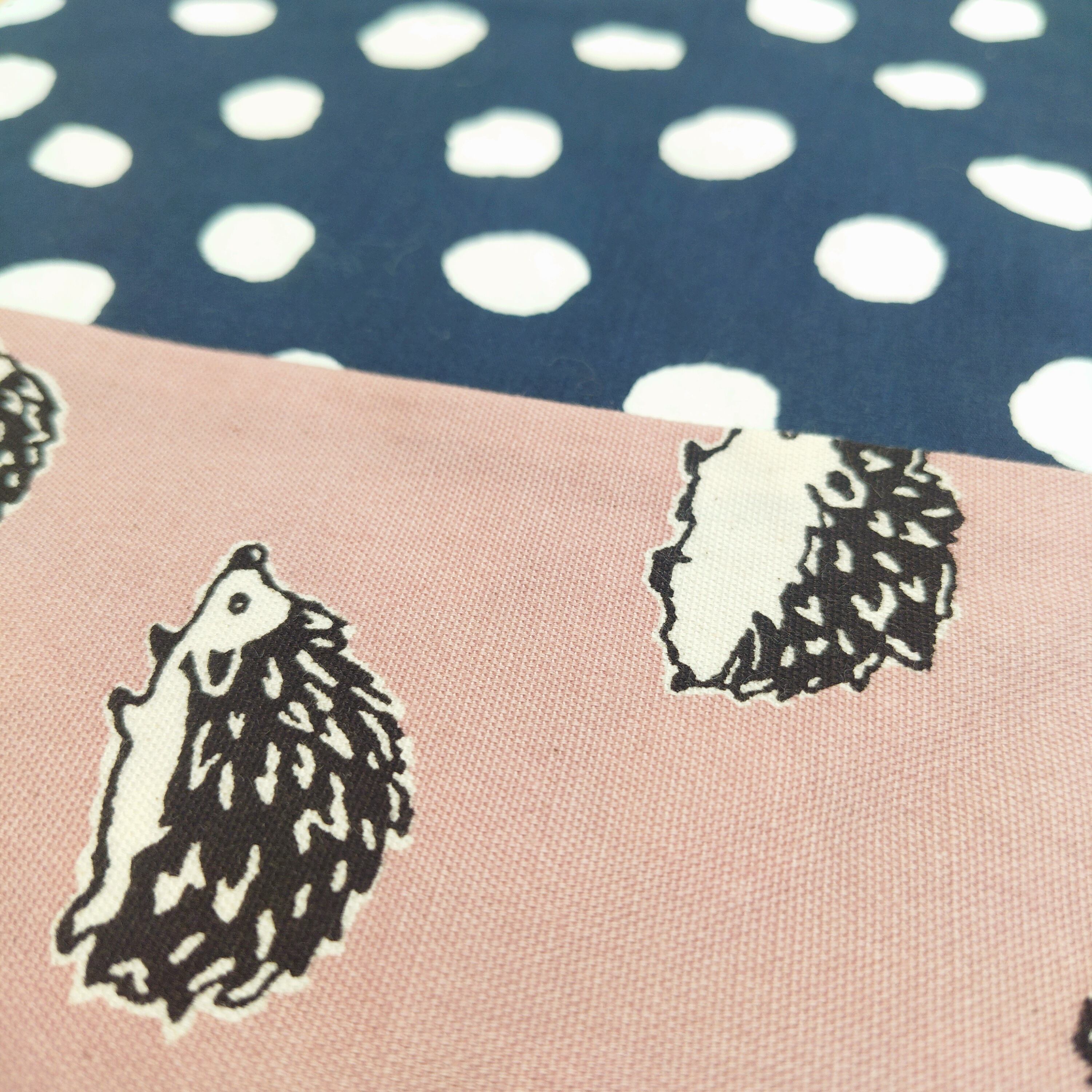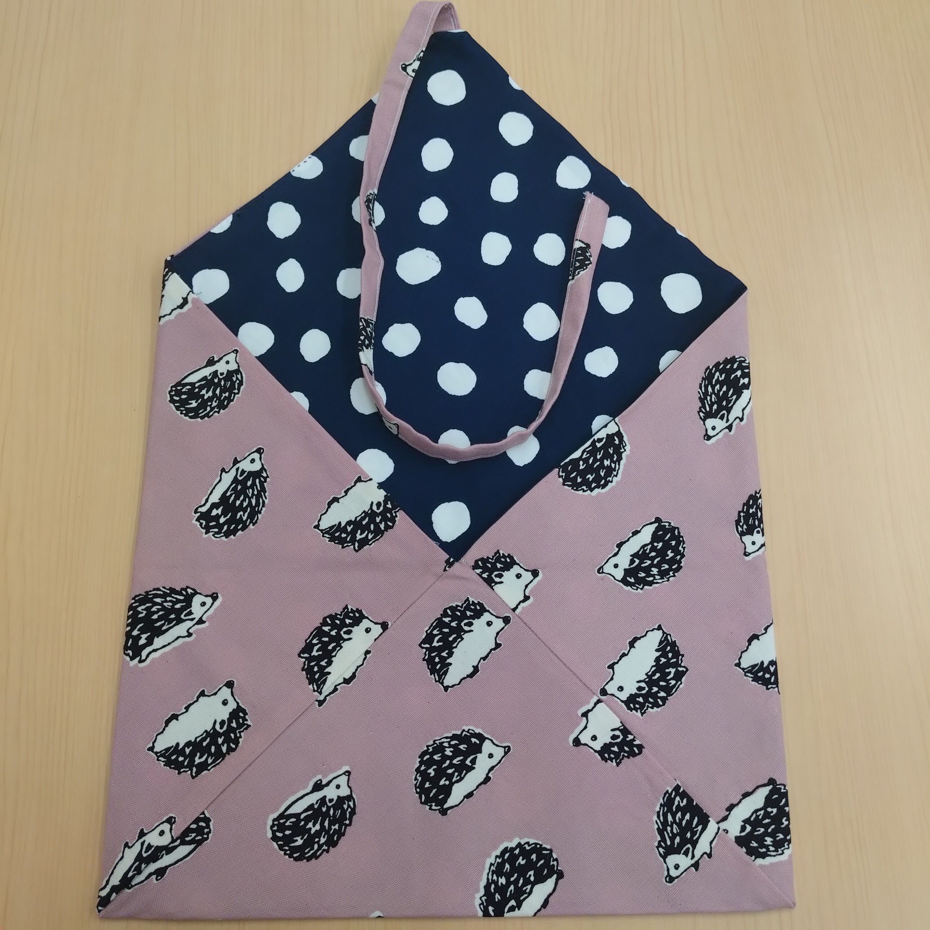 かけ袋 ピンクハリネズミ×紺地水玉②