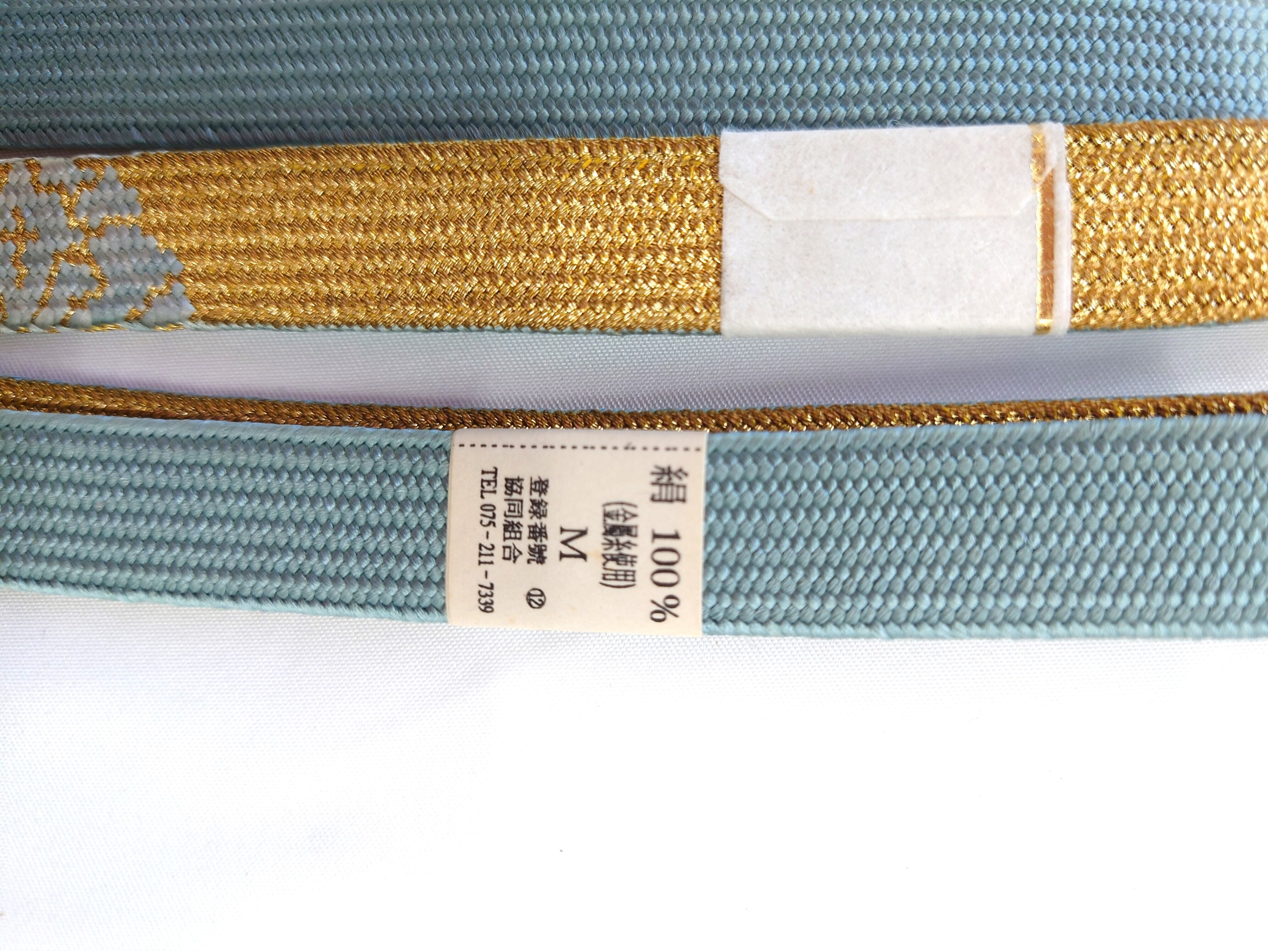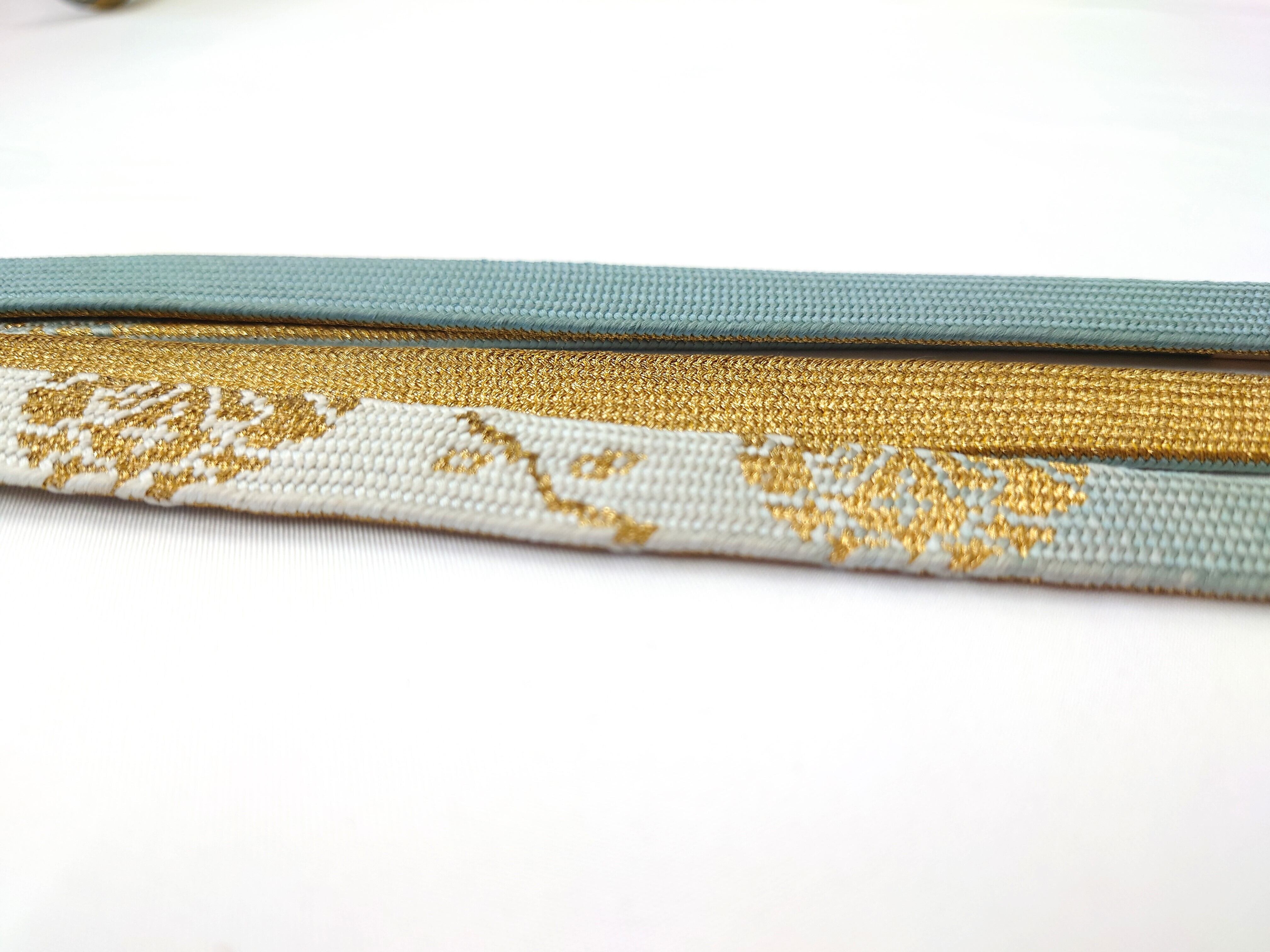 【帯締め】平組/水浅黄グラデーション×金色【未使用】
