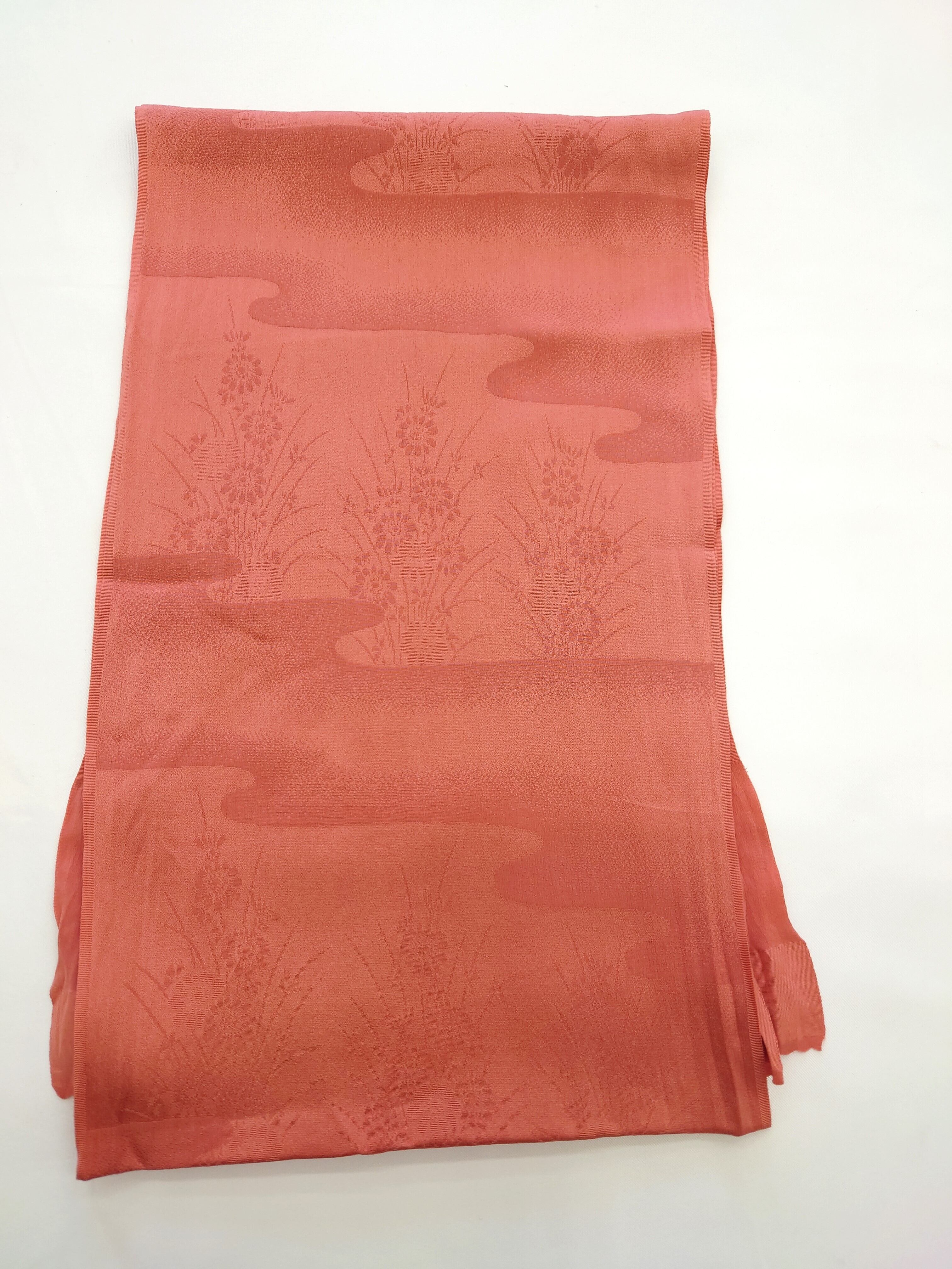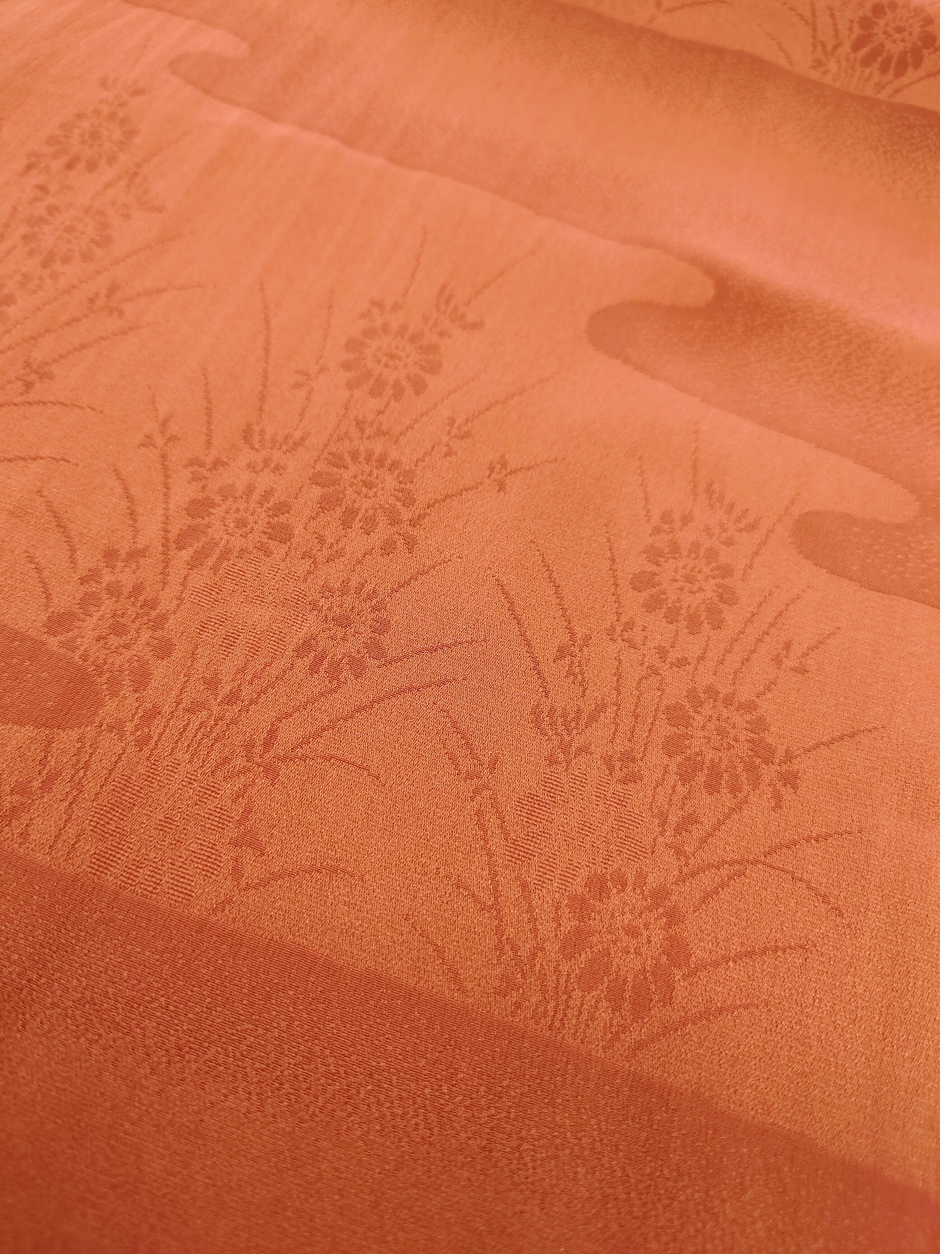【帯揚げ】赤茶/流水×菊