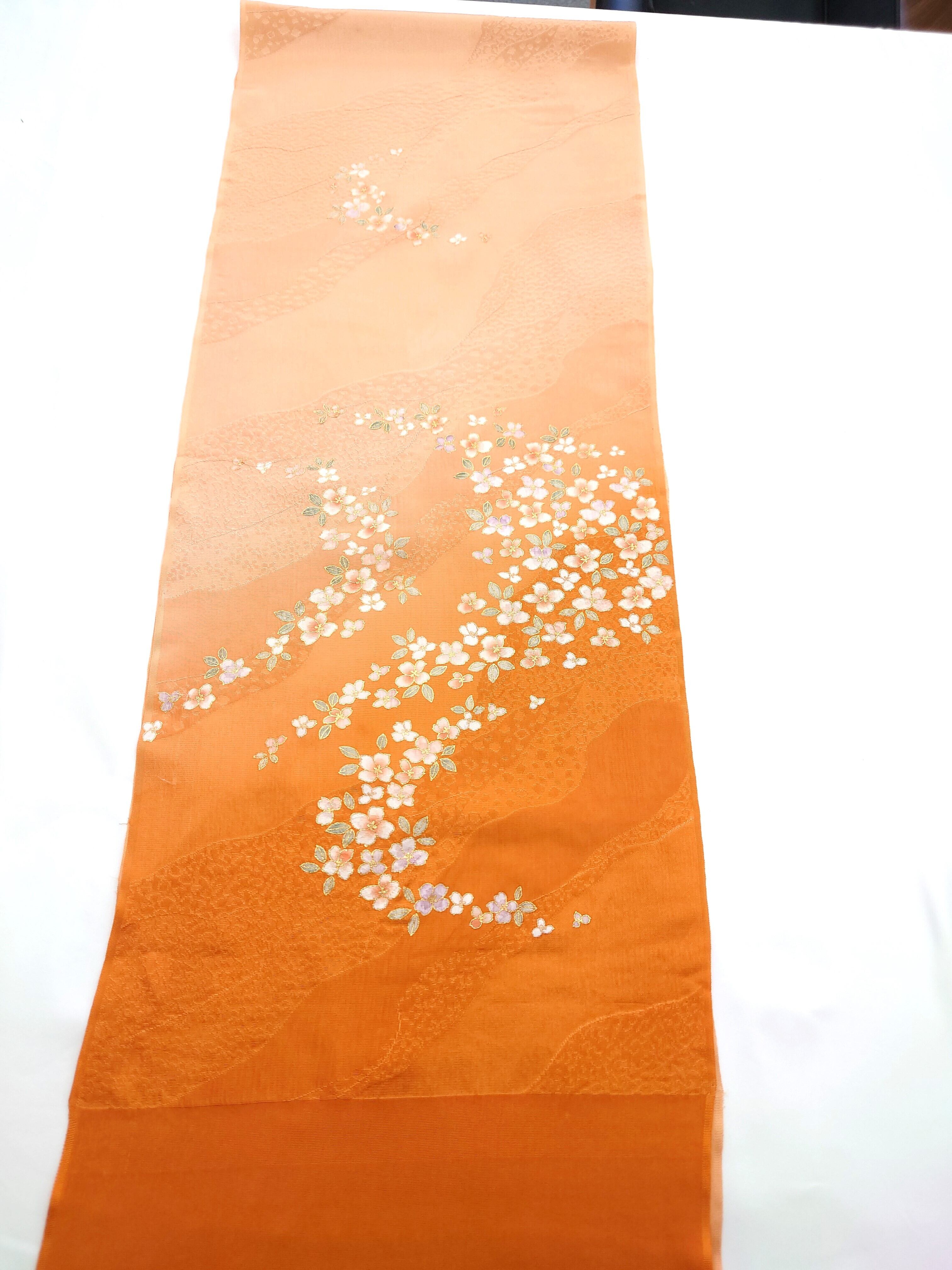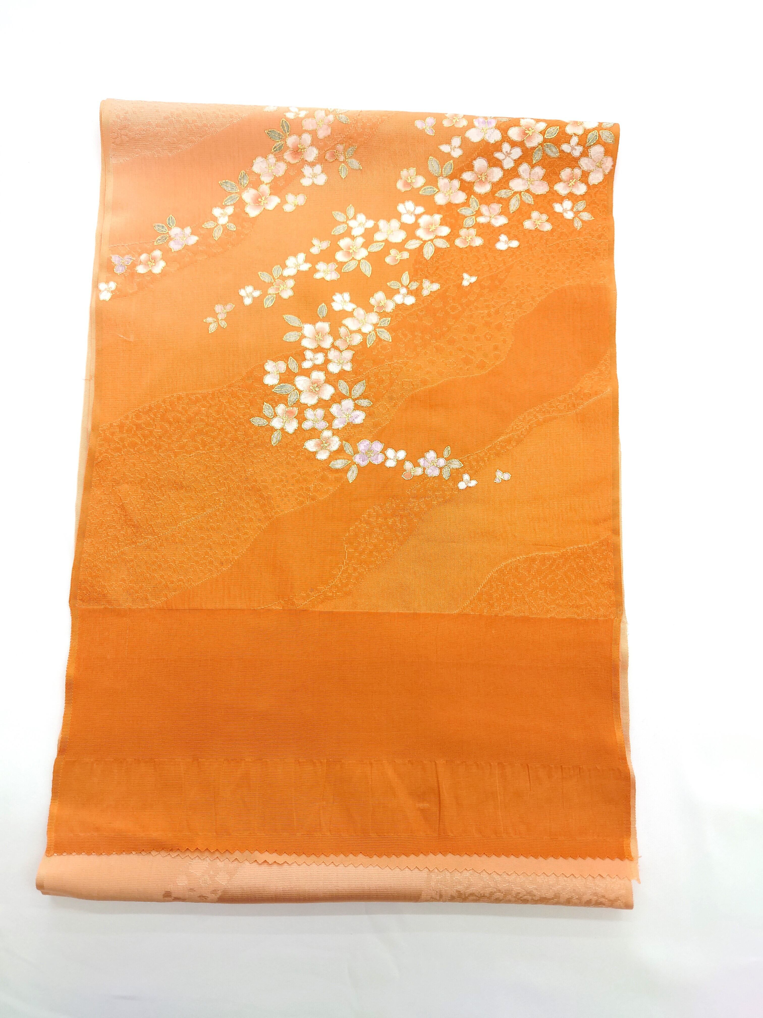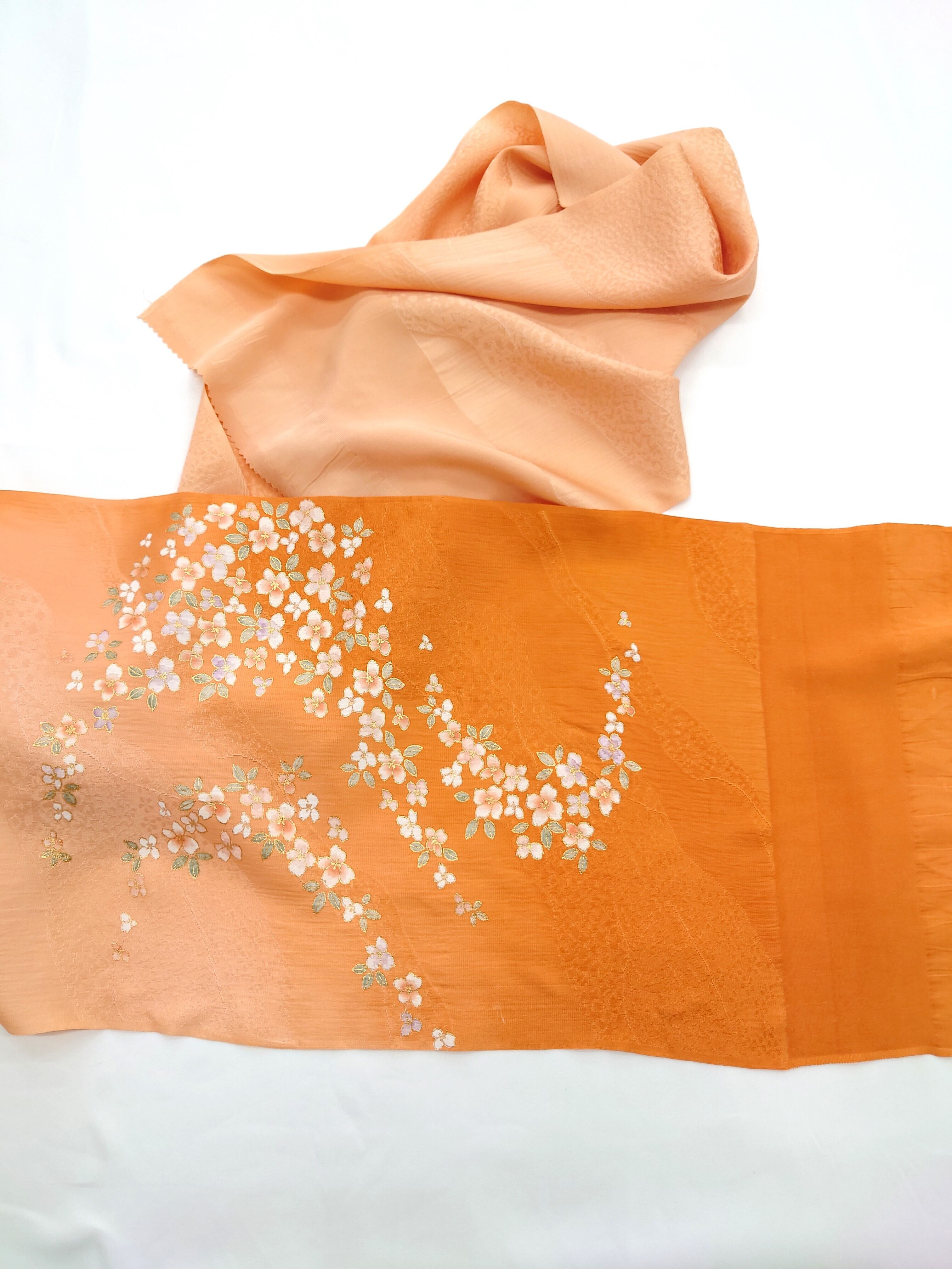 【帯揚げ】オレンジ×茶色グラデーション/花