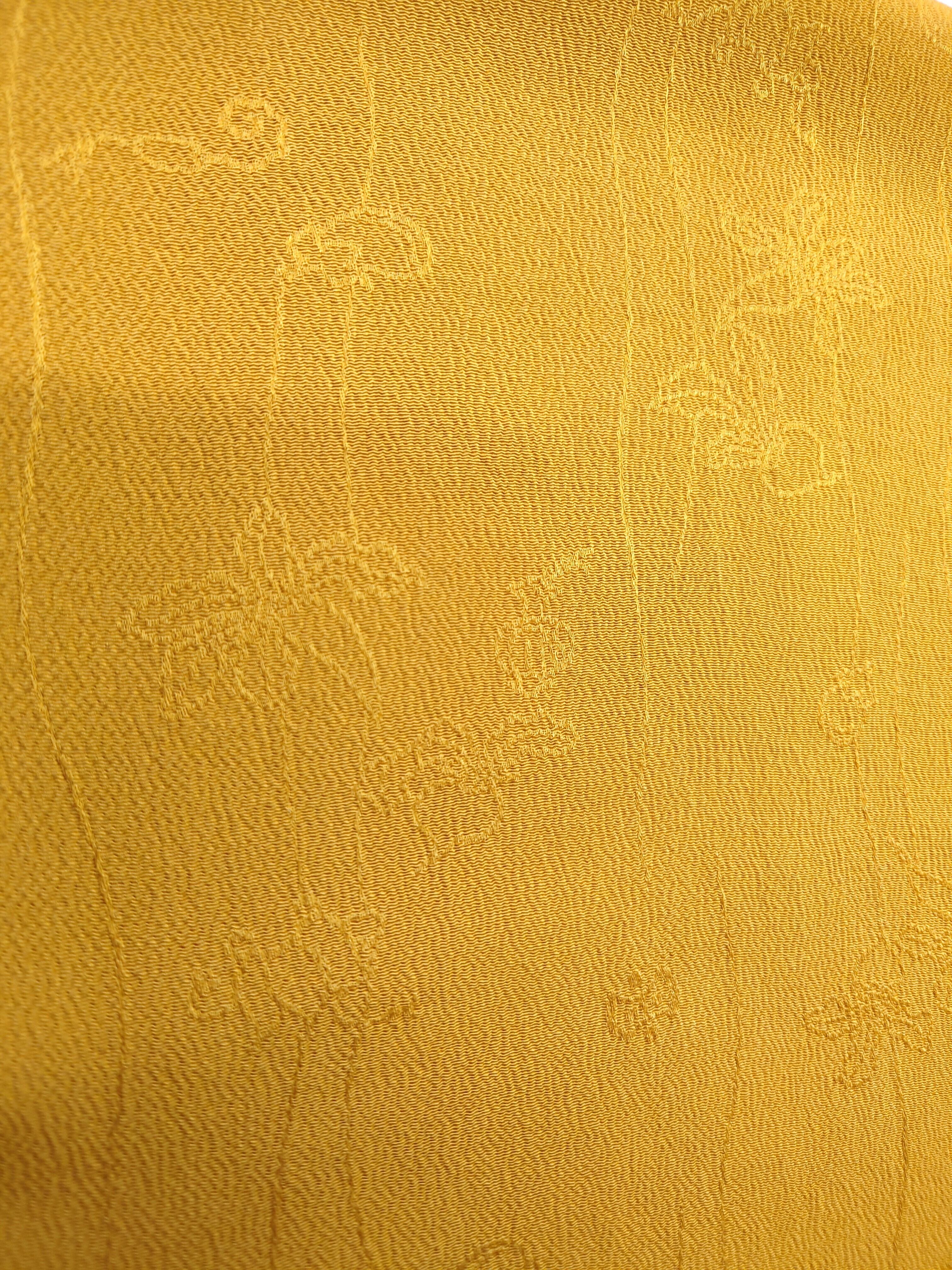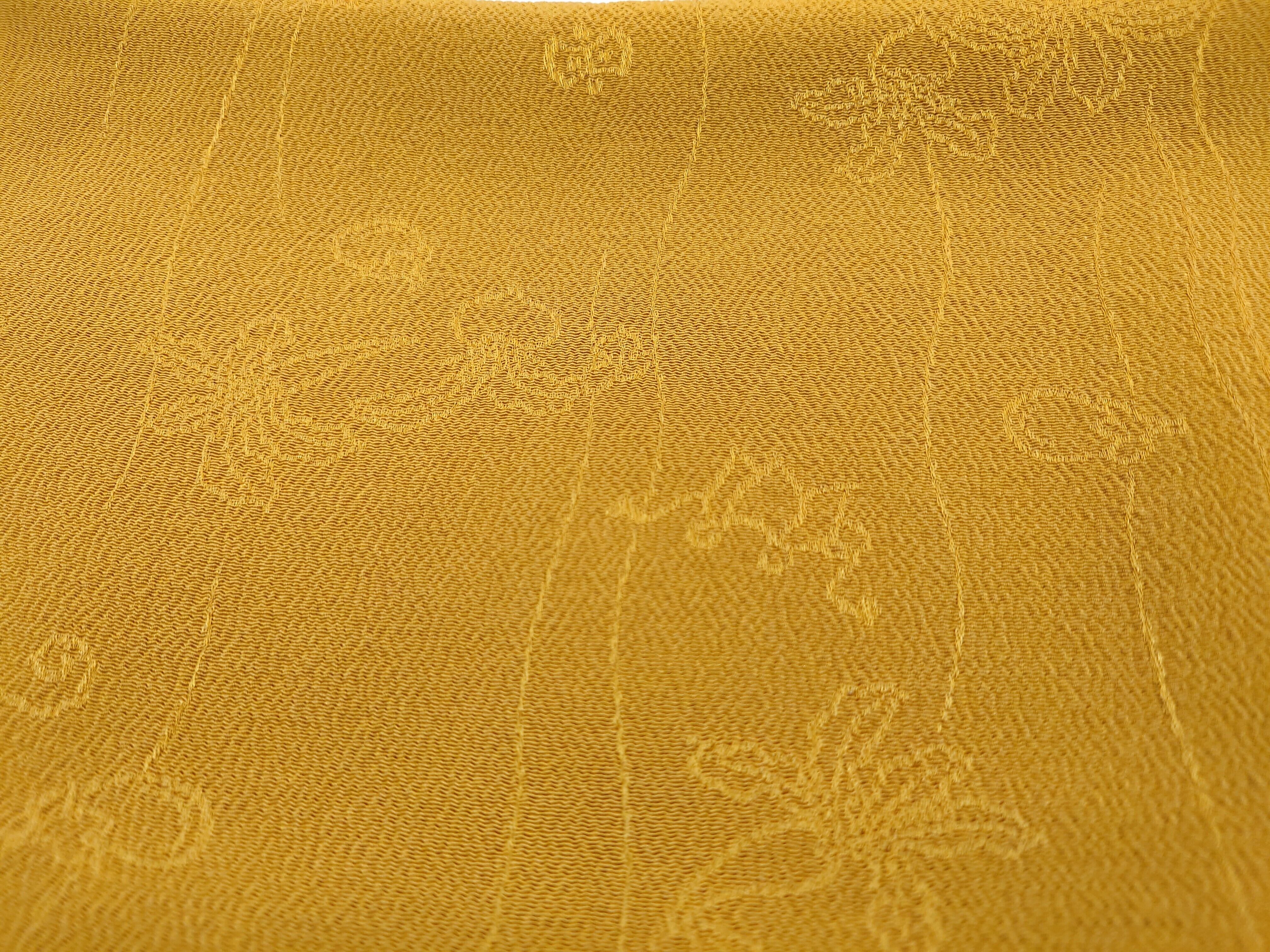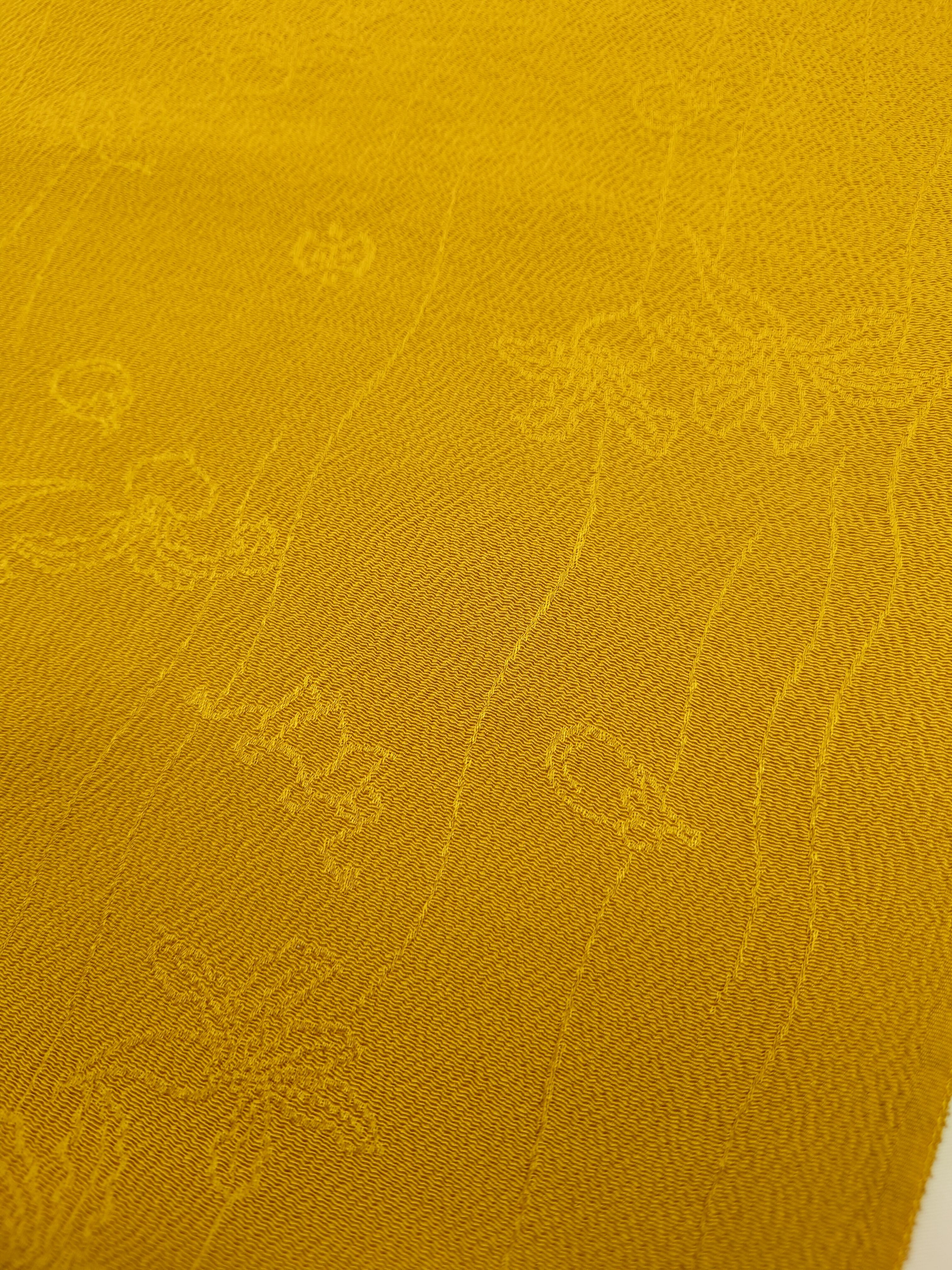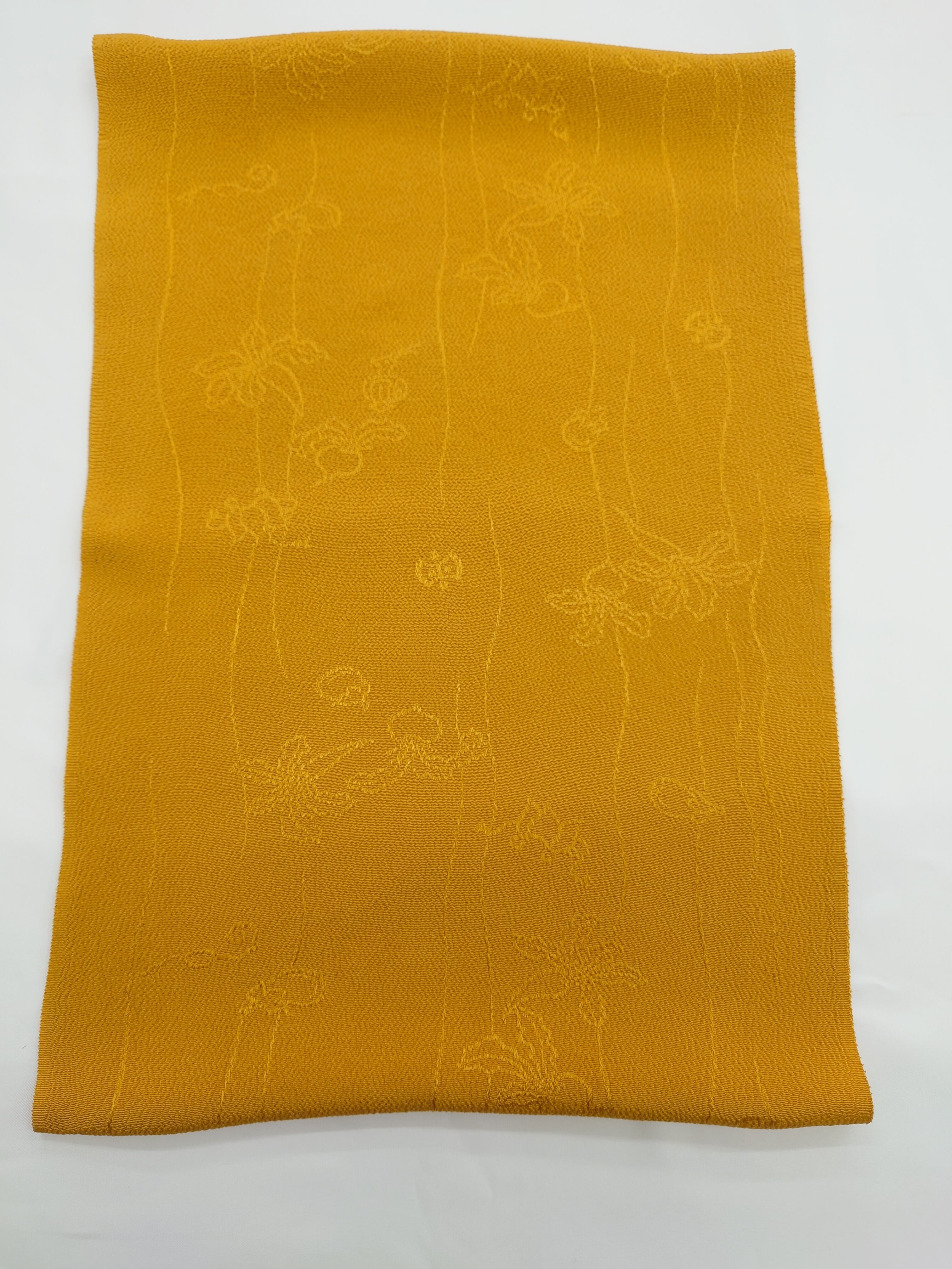 【帯揚げ】からし色/なす、かぶ、大根の刺繍